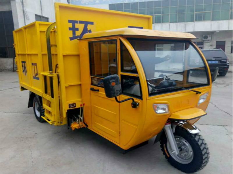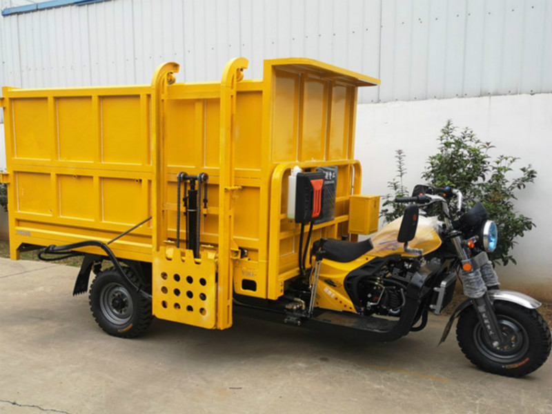 The five-way gasoline bucket garbage truck is a three-wheeled motorcycle bucket garbage collection and clearing truck that automatically lifts the garbage bin to the top of the container and dumps the garbage into the interior of the container, and then automatically places the garbage bin on the ground; When the vehicle is full of refuse, the refuse can be unloaded through the rear door of the container by lifting the container. Model size is moderate, strong power, ground clearance is large, adapt to rural road conditions. Low use cost, low fuel consumption, basically no maintenance costs. High degree of automation, easy to operate. Zhongyuan Machinery three-wheeled motorcycle hanging bucket type garbage truck is fully automatic hanging bucket type garbage truck, easy to realize the lifting and flipping of the garbage can, manpower assistance, just need to light plate hydraulic lever. Save time and effort, greatly improve the work efficiency, and increase the coefficient of stability. And the motorcycle three-wheel power is strong, driving flexibility, very suitable for units, small areas, streets and other places of garbage removal work.